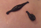 Bei der Blutegeltherapie werden Blutegeln auf die Haut gesetzt, um an gezielten Stellen dem Körper Blut zu entnehmen. Dabei saugt ein Egel ca. 10-50 ml Blut.